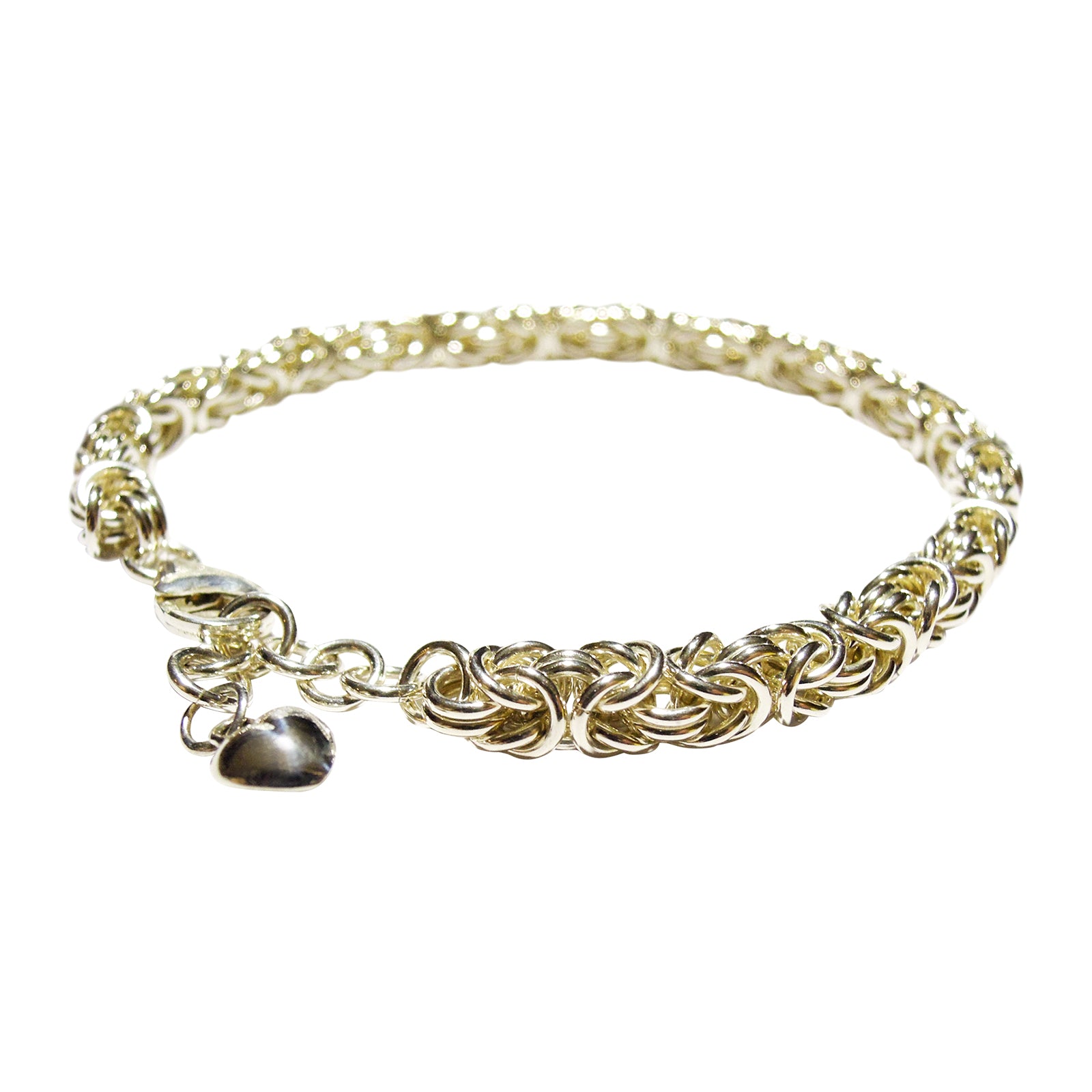 Handmade chain in the Byzantine weave using Chain Maille technique in Sterling Silver jump rings and various charms.