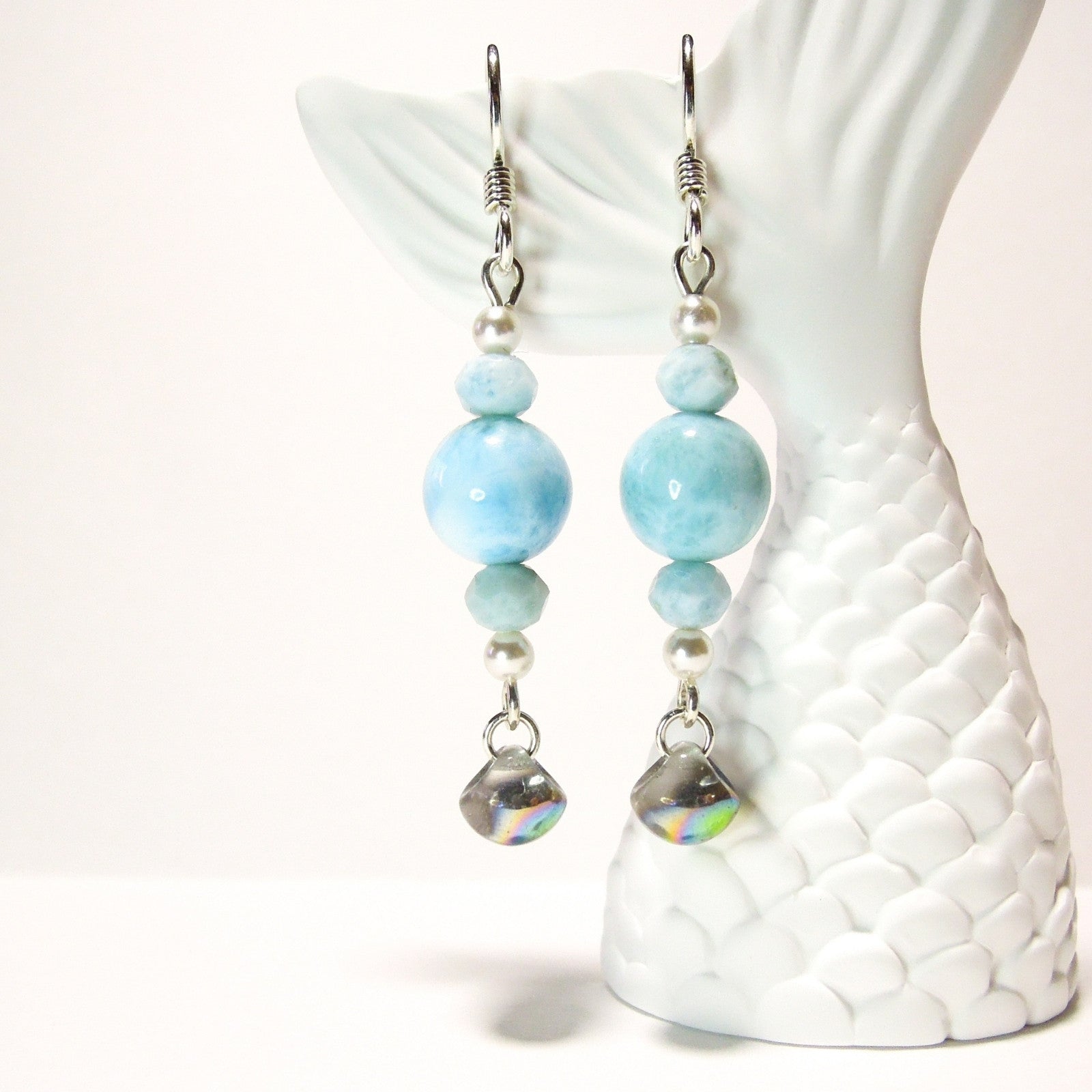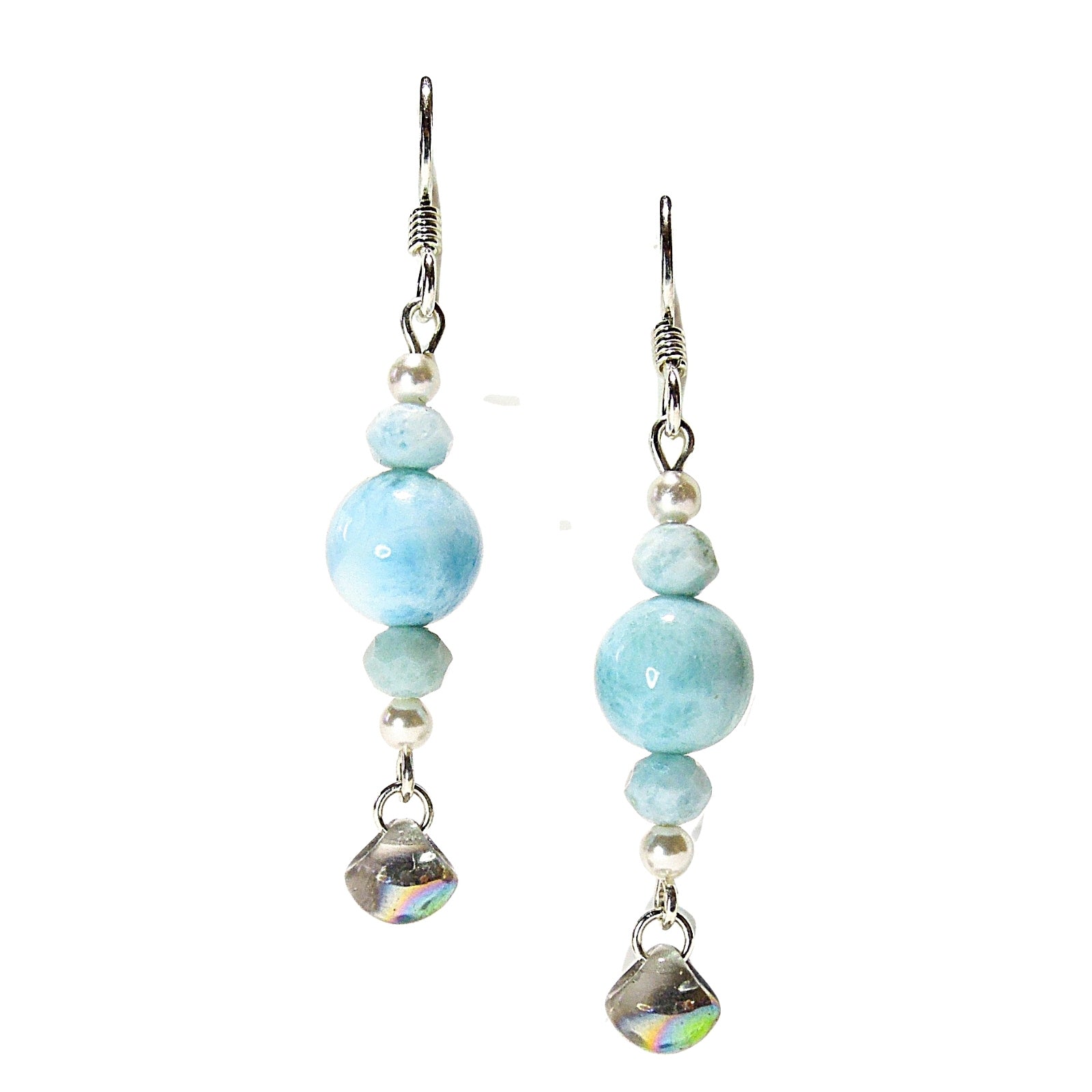 Larimar beads, Swarovski pearls, Czech glass drops with Sterling Silver ear wires & findings.