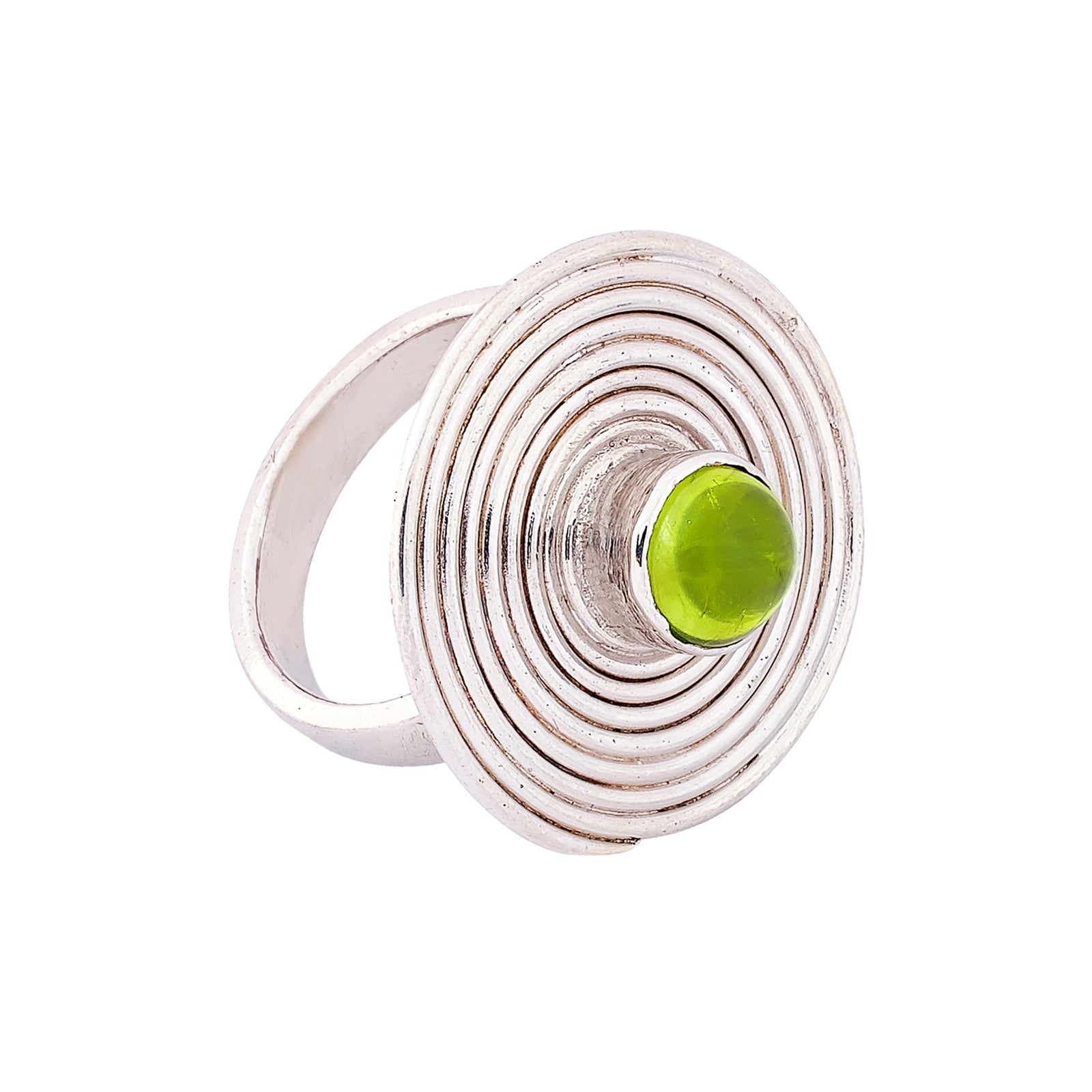 The ring has been handcrafted by local silversmith in Myanmar from unheated Burmese Peridot.