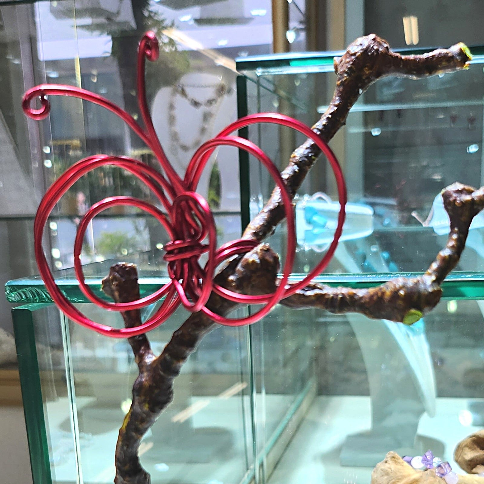 Statement butterfly wire wrapped ring with fuchsia colored wire.
