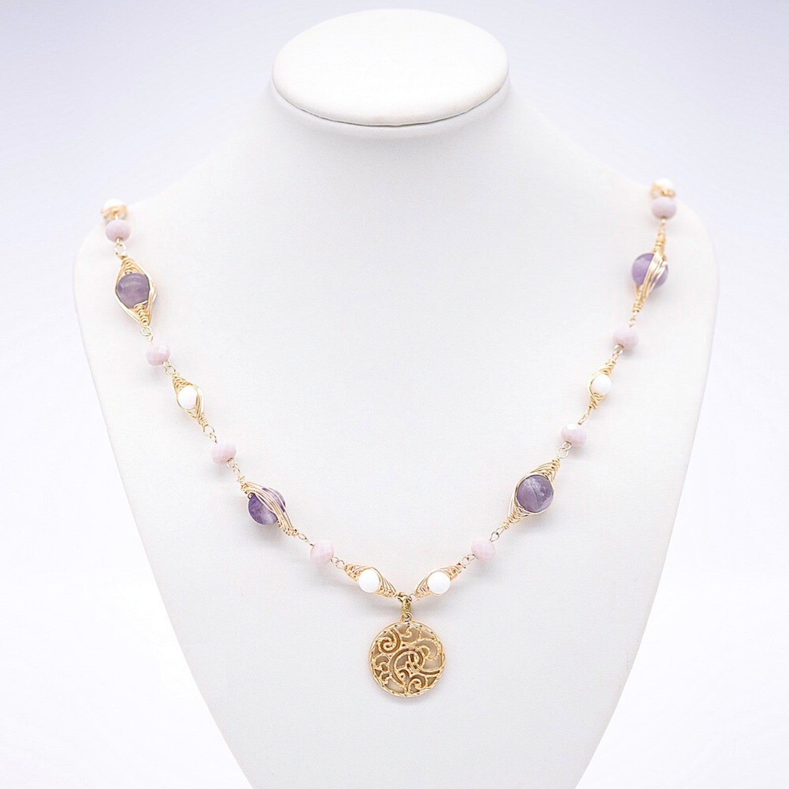 Handmade using fashion jewellery techniques, beads wrapped in herringbone stype. One-of-a-kind, sold.